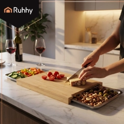 Avastage nutikas köögilaud, mis kiirendab nii lõikamist kui ka koristamist. Kaks väljatõmmatavat anumat püüavad kinni hakitud koostisosad või jäägid, nii et töötate puhtalt ja tõhusalt. Bambusplaat on tugev, niiskuskindel ning samas õrn nugade suhtes.