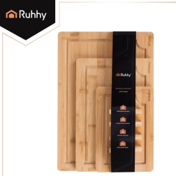 Praktiline RUHHY kolme erineva suurusega bambusest lõikelaua komplekt koos tugeva alusega mugavaks hoiustamiseks. Looduslik bambus on vastupidav ja hügieeniline, terasõbralik ning kuivab kiiresti. Integreeritud mahlasooned aitavad hoida korra nii liha, köögivilja kui ka puuvilja lõikamisel. Ideaalne igasse kööki nii lõikamiseks kui serveerimiseks.