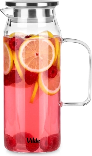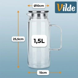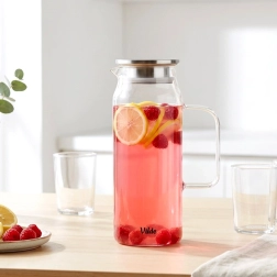 Elegantne klaaskann mahutavusega 1,5 l ja roostevabast terasest kaanega, millel on sõel ja tihend. Vastupidav boorsilikaatklaas talub temperatuure vahemikus -20 °C kuni 150 °C, kaas kuni 100 °C. Praktiline kahekordne valamissüsteem hoiab puuviljad, jää ja ürdid kannus ning tagab puhta serveerimise.