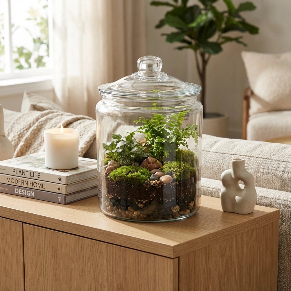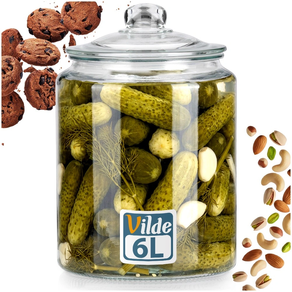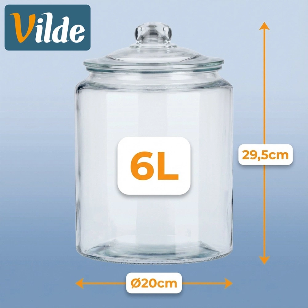Suur mahutavusega klaaspurk ühendab elegantselt välimuse ja funktsionaalsuse. Läbipaistva, paksu klaasi abil on sisul alati suurepärane ülevaade, samal ajal kui tihendiga klaaskaan kaitseb toiduaineid niiskuse ja aroomikadu eest. Mõõdud 20 × 20 × 29,5 cm pakuvad rohkelt ruumi nii toorainetele kui ka kodustele maiustele.