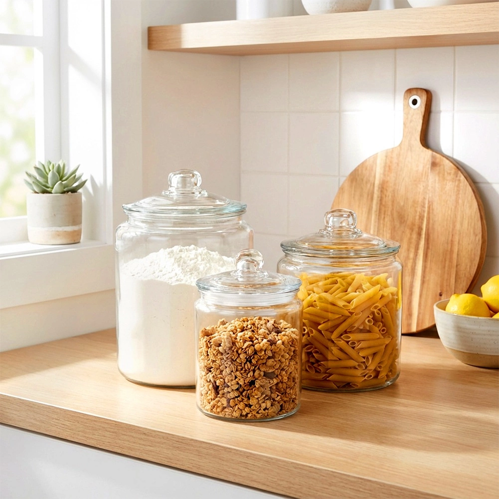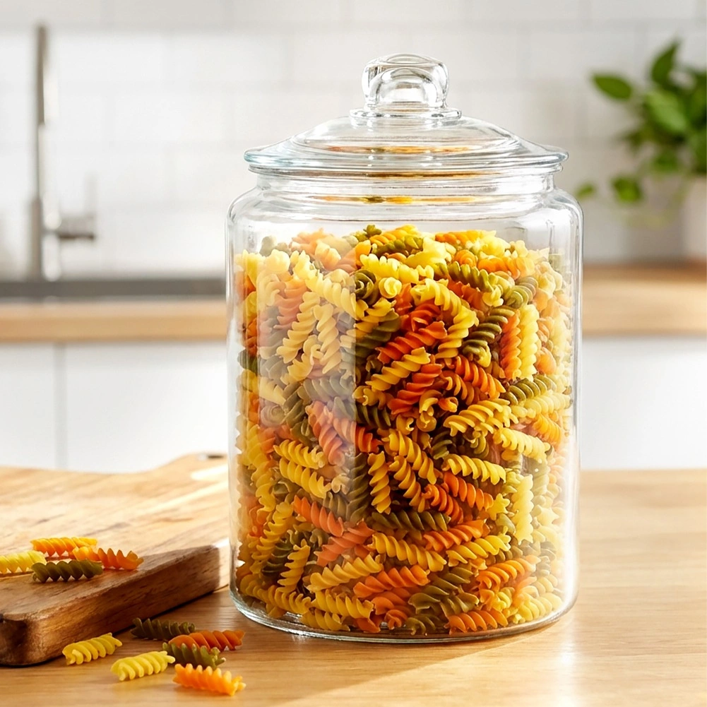 Kulumiskindel selge klaas võimaldab varude kohest kontrolli ning esitleb kaunilt pastat, jahu või küpsiseid köögitasapinnal.