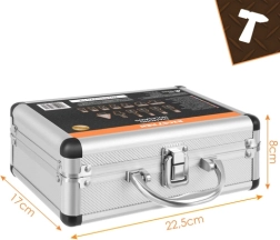 Tugev kohver kaitseb komplekti nii transportimisel kui hoiustamisel, hoides tööriistad korrastatult ja töökõlbulikuna.