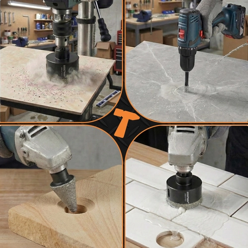 Diameetrite vahemik 6–68 mm katab enamiku levinud paigaldus- ja montaažitöid (segistid, pistikupesad, läbiviigud). Kooniline frees 2–35 mm sobib servade faasimiseks, avade suurendamiseks ja viimistlemiseks. Universaalne M14 keere ühildub nurklihvijaga; kaasasoleva adapteri abil ühendad hõlpsalt ka tavalise puurmasina.