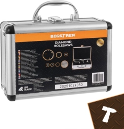 Professionaalne BIGSTREN teemantavade komplekt on loodud täpseks puurimiseks graniitkeraamikasse, keraamikasse, kivisse, graniiti, marmorisse ja betooni. Tänu vakuumjoodetud teemantidele ja topeltterakihile saavutatakse kiire ja puhas lõige ilma servade kildumiseta ning pikk tööiga. Vahemik 6–68 mm, keere M14 ja kaasasolev adapter trellile tagavad laia ühilduvuse. Komplektis on ka koonuslik teemantfrees 2–50 mm avade korrigeerimiseks ja suurendamiseks ning vastupidav alumiiniumkohver ohutuks hoiustamiseks.
