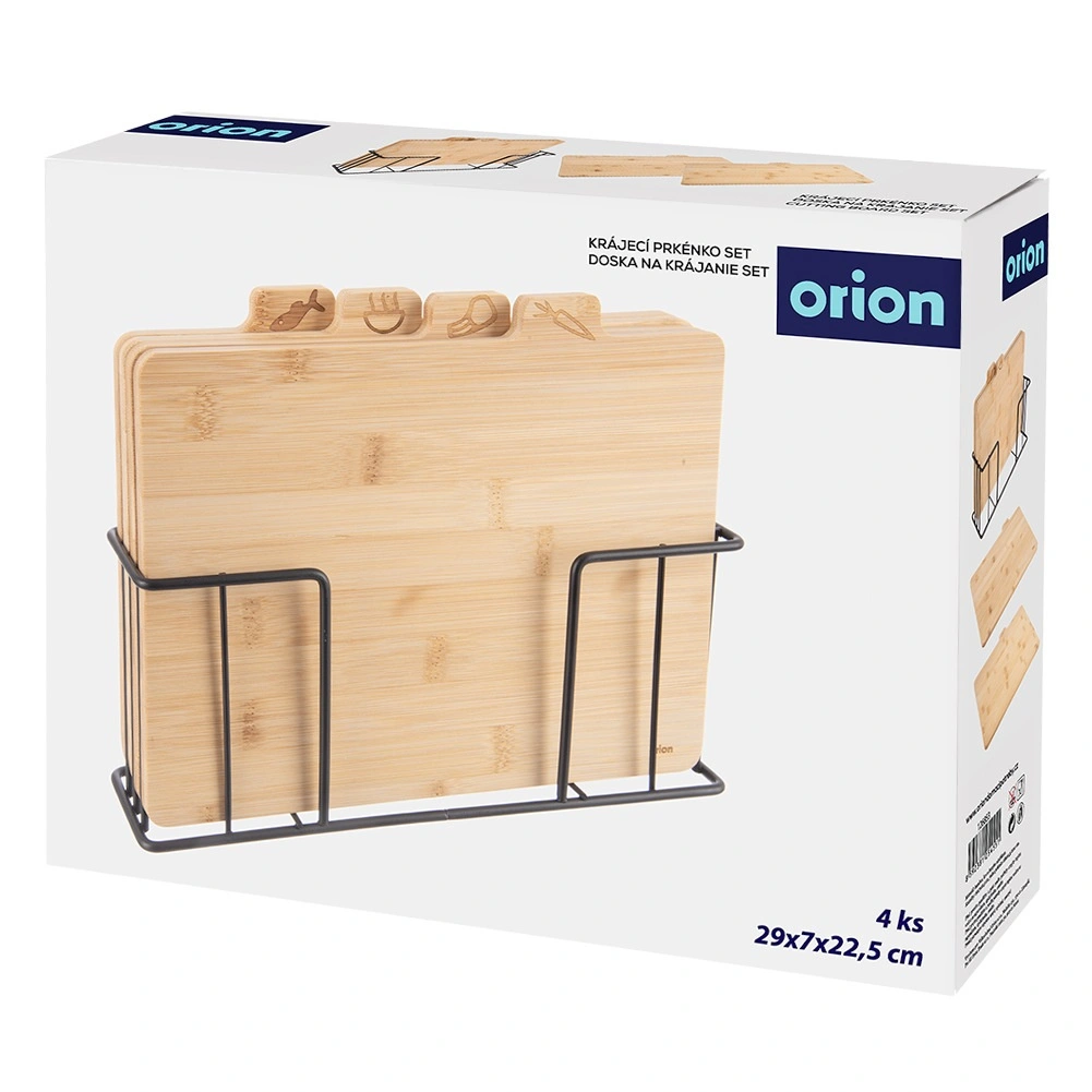 Praktiline nelja bambusest lõikelaua komplekt koos hoidikuga hügieenseks ja korrastatud toiduvalmistamiseks. Igal lõikelaual on oma kategooria ikooniga – köögiviljad, toores liha, valmis toidud ja kalad. Vastupidav bambus ei ima lõhnu, kuivab kiiresti ja on nugadele õrn, must metallist hoidik hoiab lõikelauad korraldatult ja õhu käes.