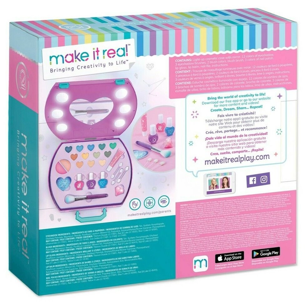 Avastage meigi võlu kaasaskantava MAKE IT REAL kosmeetikastuudioga. Kohvri kaanes on südamekujuline peegel külgede valgustusega, mis tagab täpse ülevaate meigi pealekandmisel. Tänu rikkalikule sisule saavad lapsed turvaliselt ja rõõmuga katsetada eri ilmeid ning arendada oma loovust.
