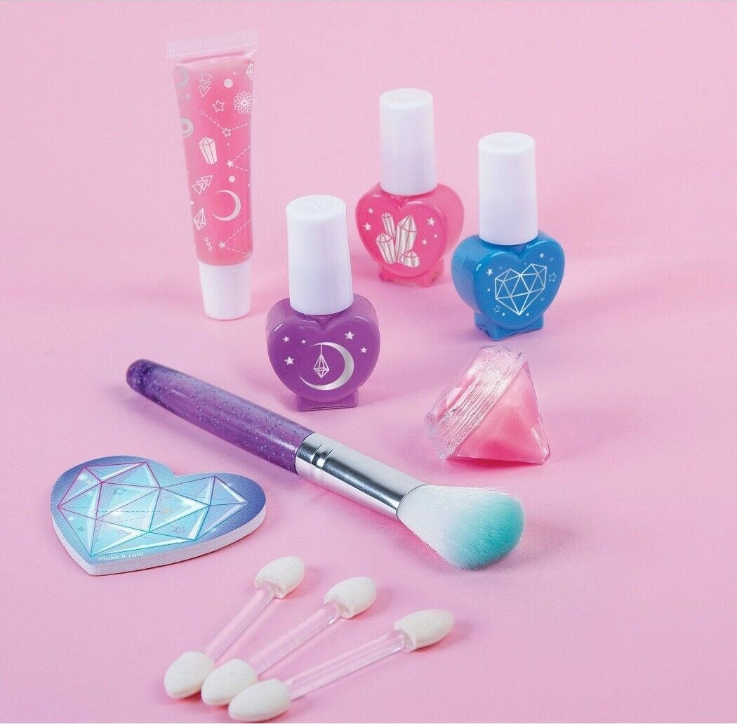 Stiilne kosmeetikastuudio kaasaskantavas kohvris väikestele iluhuvilistele alates 8. eluaastast. Komplekti kuulub südamekujuline peegel koos LED-valgustusega, 12 lauvärvi, põsepuna, küünelakk, huuleläige ja -palsam ning pintslid. Ideaalne loominguliseks meikimiseks nii kodus kui ka reisil.