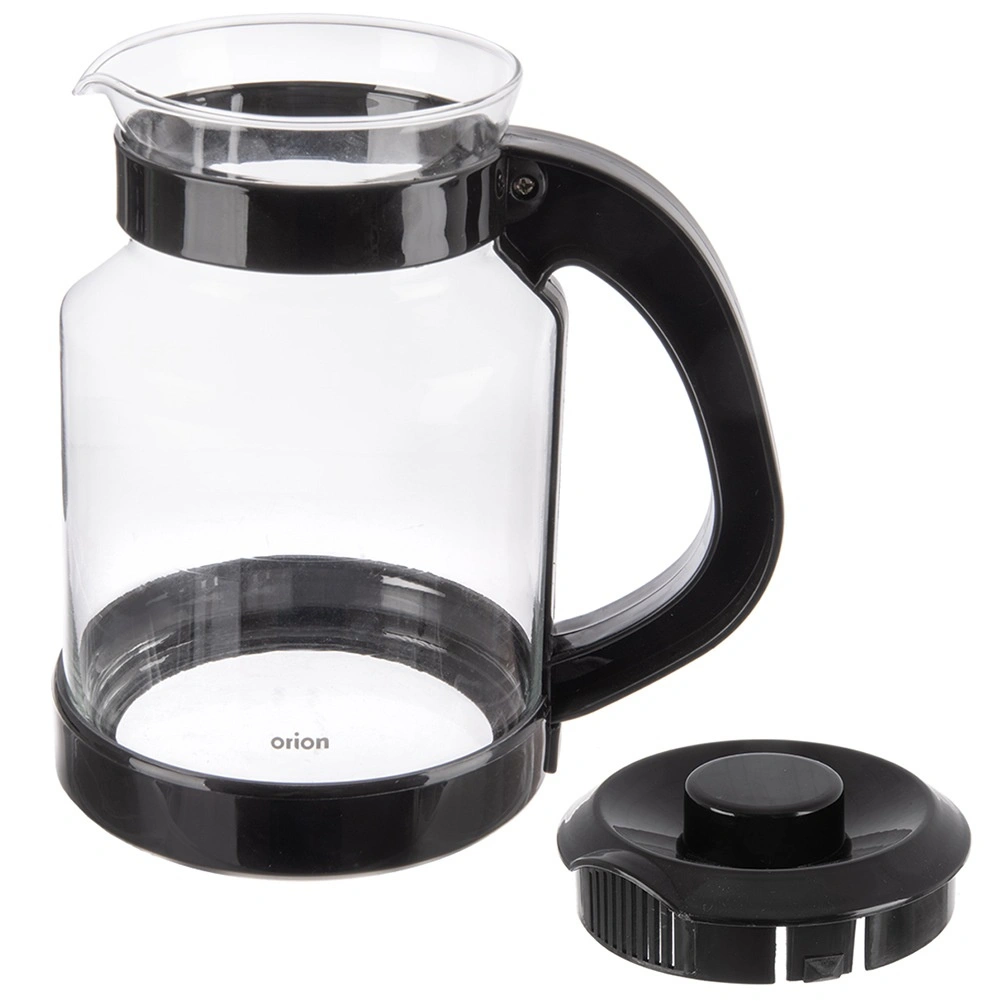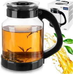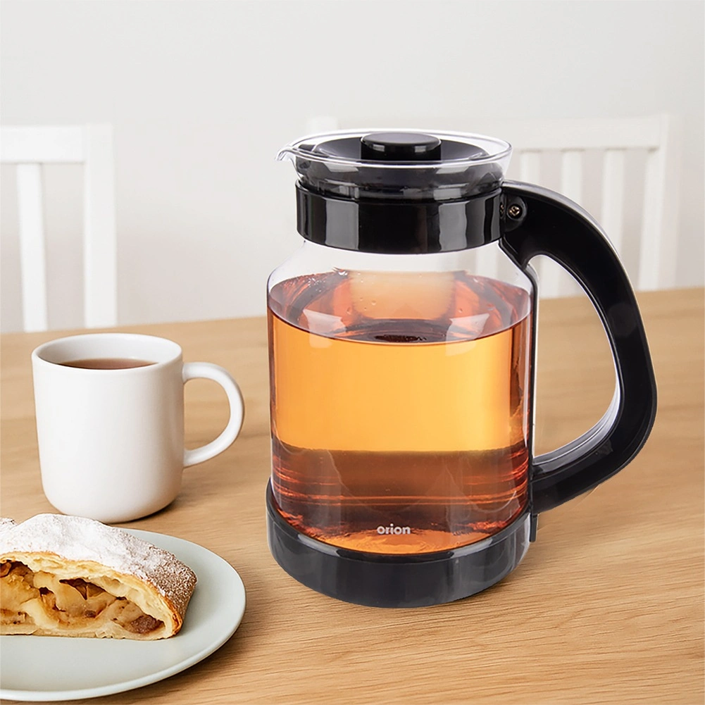 ORION klaaskann mahuga 2,25 l sobib suurepäraselt kuumade jookide, nagu tee, kohv või taimetõmmised, valmistamiseks ning külmade jookide, mahlade ja vee serveerimiseks. Läbipaistev korpus võimaldab hõlpsalt jälgida joogi kogust ja tugevust, samal ajal kui kaas kaitseb sisu tolmu eest ja aitab temperatuuri hoida.