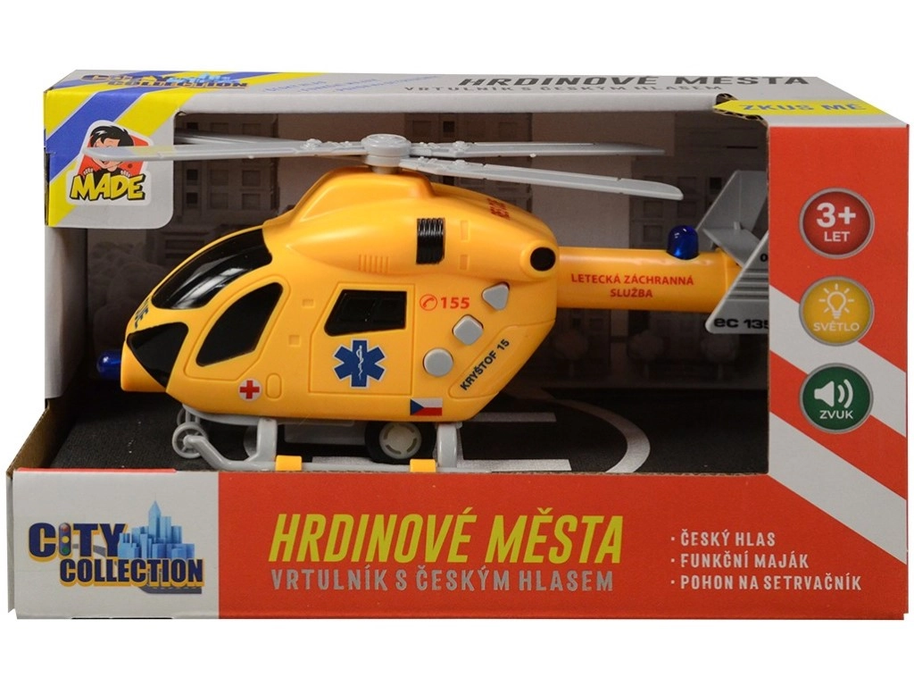 Loo koju oma helikopteriplats ja asu päästemissioonidele detailirohke helikopteriga City Collection – Linna Kangelased kollektsioonist. See mudel tšehhikeelse disainiga pakub autentseid valgus- ja heliefekte, sh tšehhikeelset dispetšeri ja piloodi vestlust, mis võimendab mänguelamust.