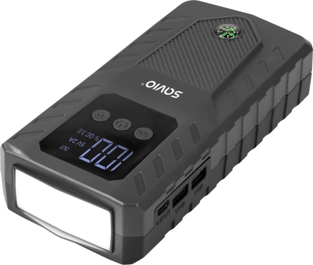 Integreeritud 10 000 mAh akupank kahe USB-A pordiga (5 V/1 A ja 5 V/2 A) laeb kiiresti telefoni, tahvelarvuti või navigaatori. Käivitamise ohutuse tagavad nutikad Smart Clamp krokodillid vastupidise polaarsuse ja lühise kaitsega. Komplektis on ka LED-taskulamp, kompass ning vastupidav ehitus nõudlike tingimuste jaoks.