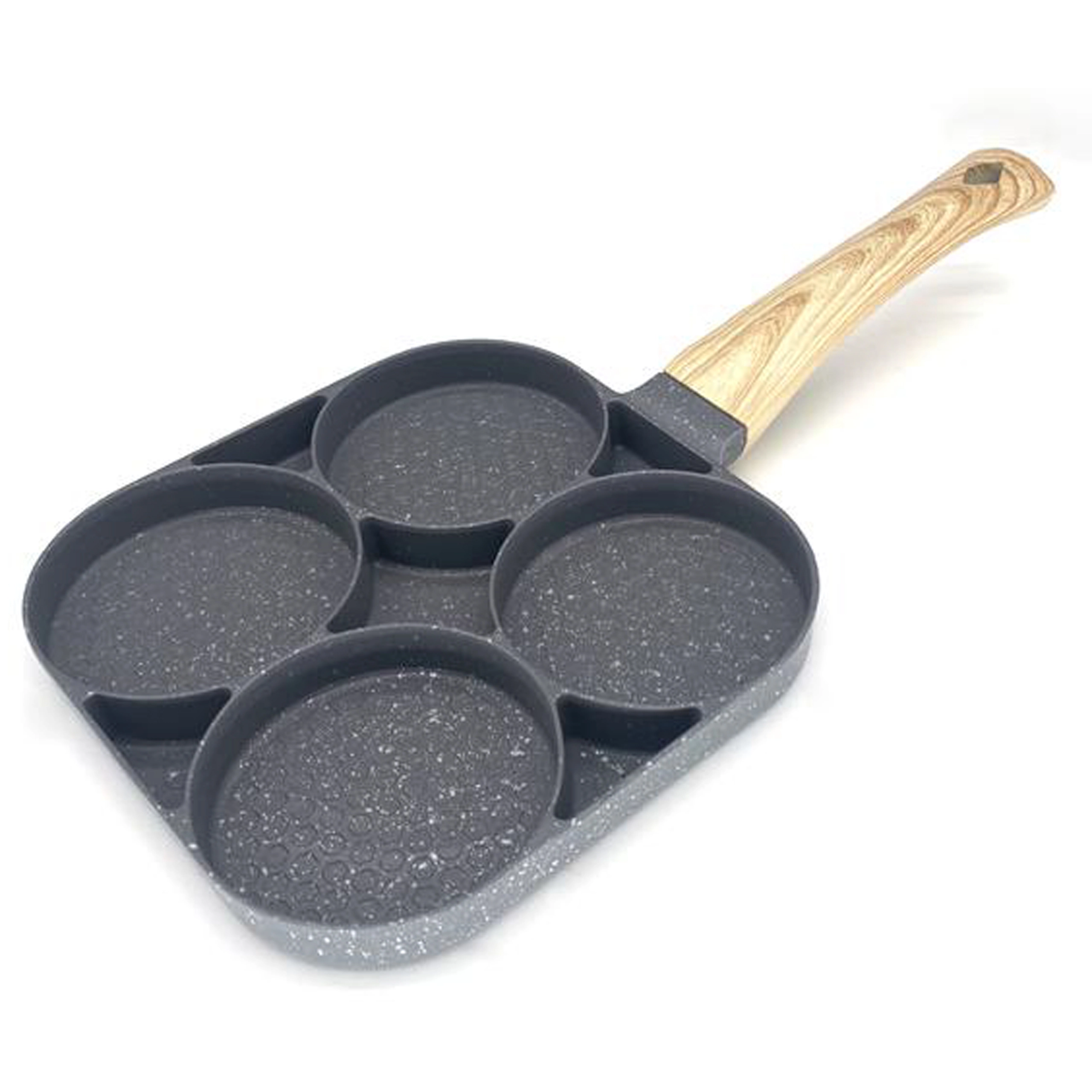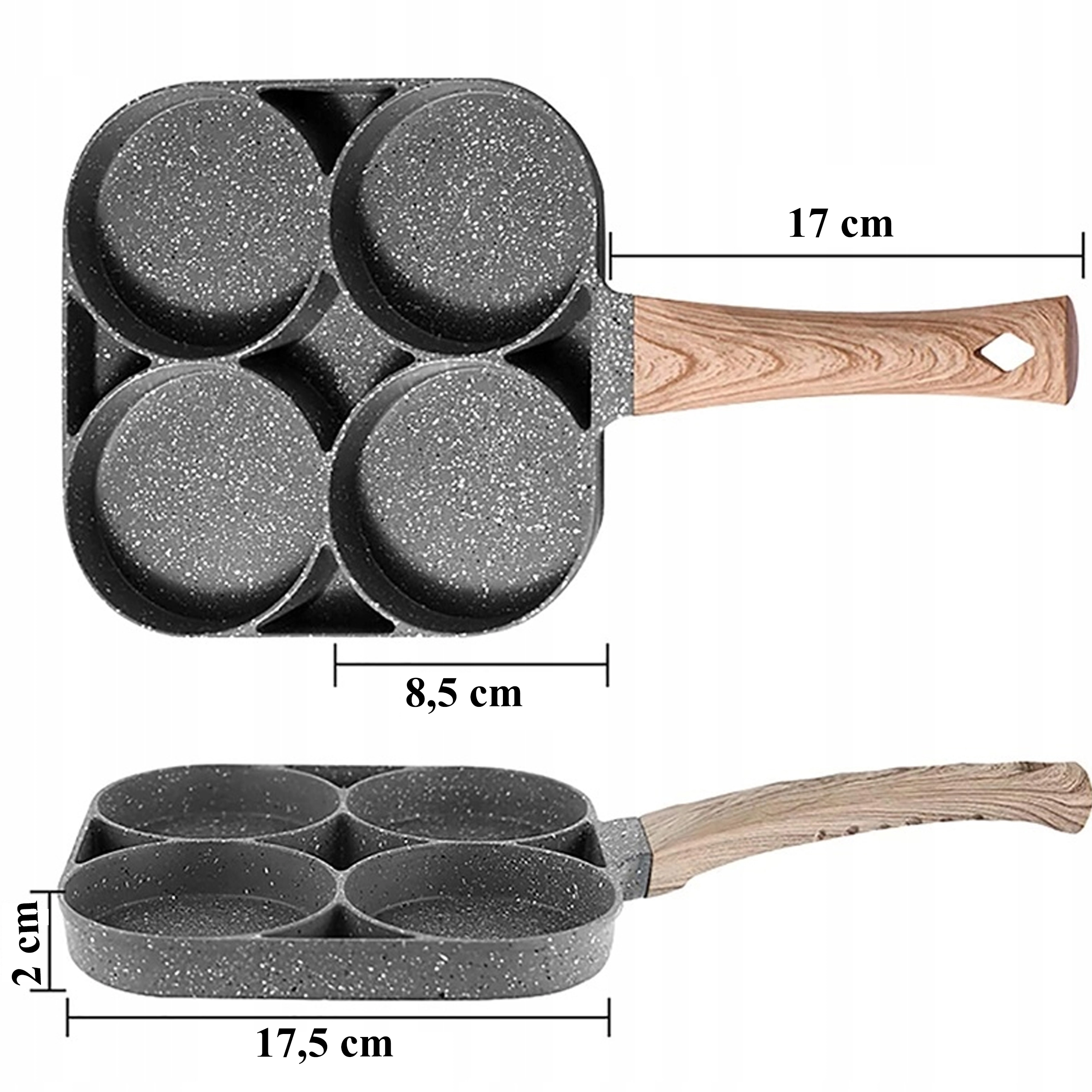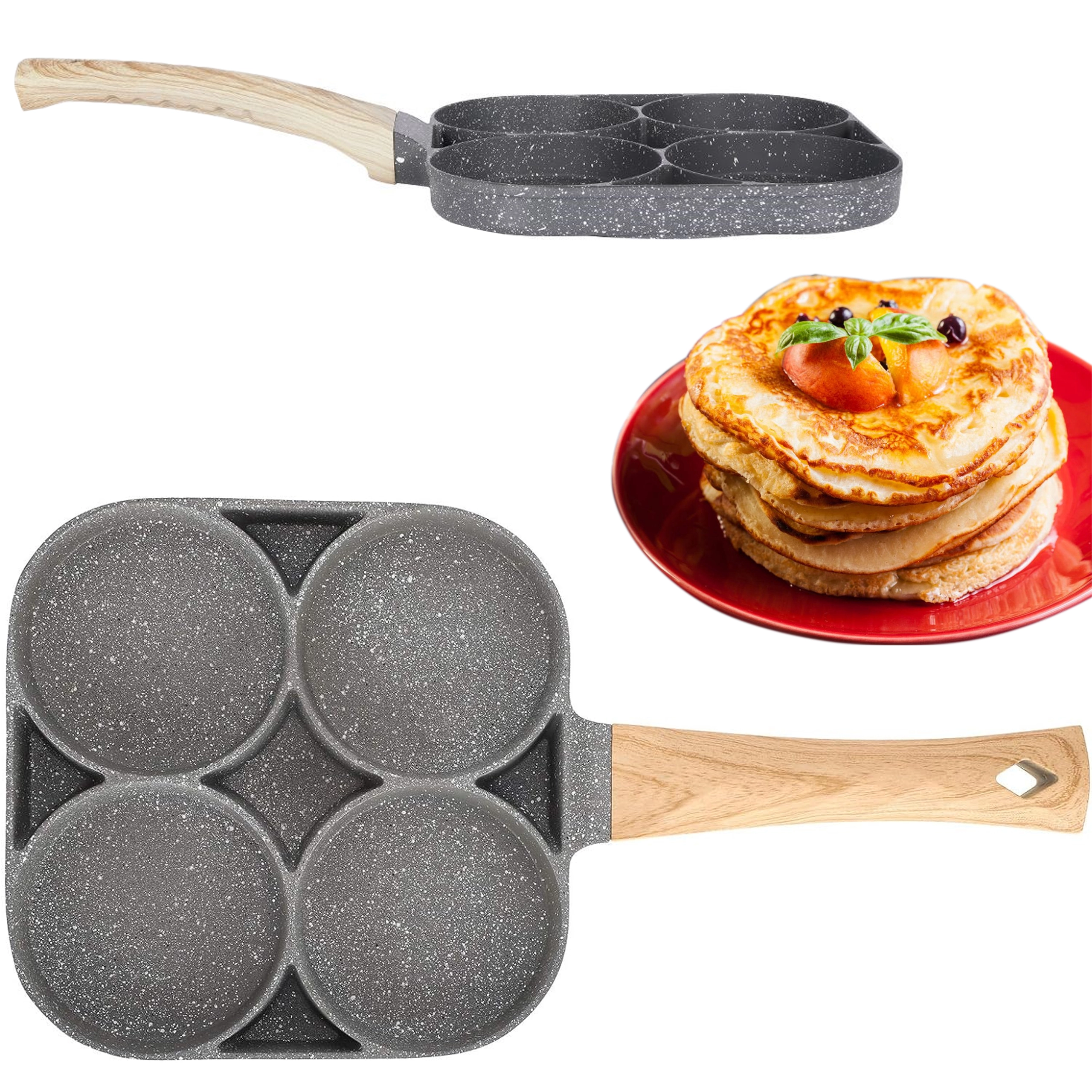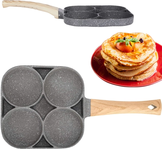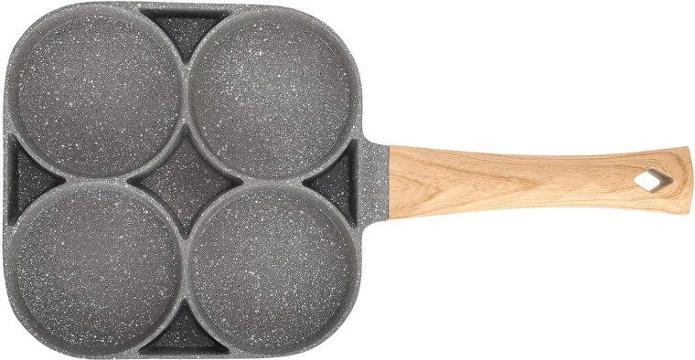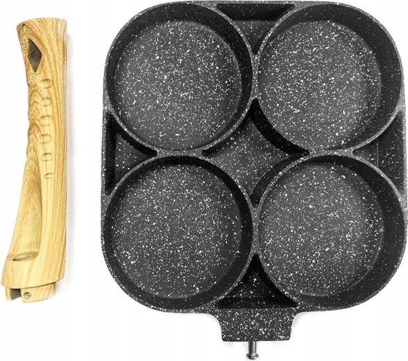 Valmista hommikusöök kiiremini ja puhtamalt selle universaalse panniga, millel on neli ümmargust kambrit. Tänu mittekleepuvale pinnale ja ühtlasele soojusjaotusele küpsetad munad, pliinid, kotletid ja mini-pannkoogid korrapärase kujuga ja samaaegselt. Ergonomiline käepide puidumustrilise viimistlusega istub käes mugavalt ning pann sobib induktsioonile, gaasile ja teistele pliiditüüpidele.