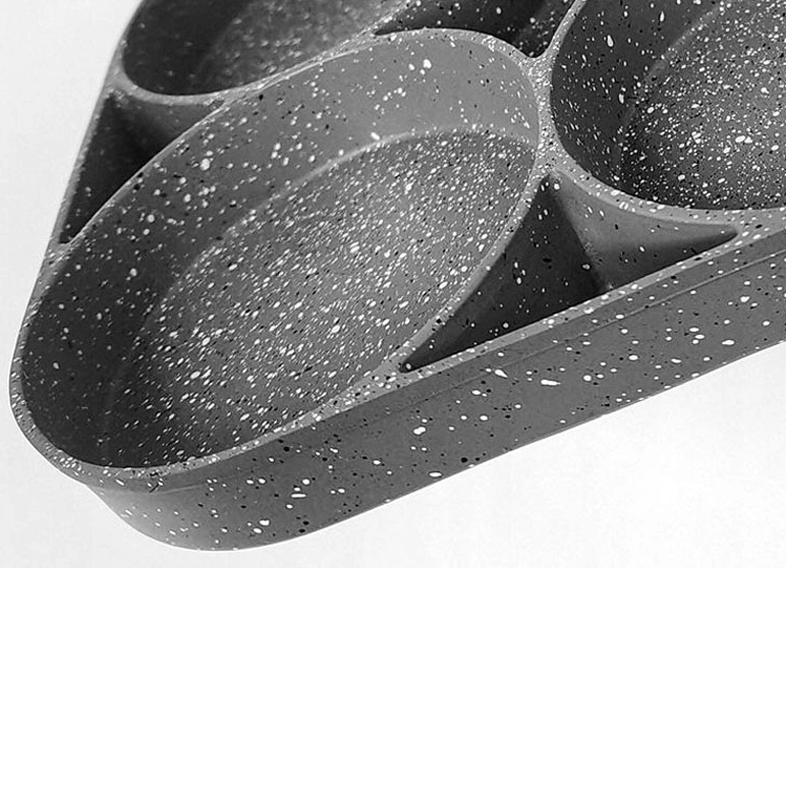 Täpiline kiviefektiga pind väldib kõrbemist ning lihtsustab pööramist ja puhastamist.