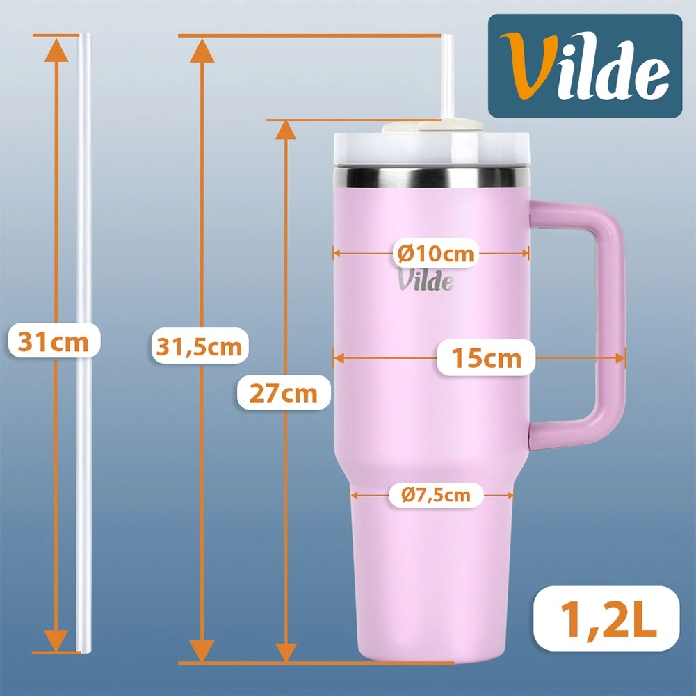 Suur mahutavusega 1,2 l termotass koos vaakumiga topeltseinaga hoiab joogid soojana kuni 12 tundi ja külmana kuni 8 tundi. Sellel on ergonoomiline sang libisemisvastaste elementidega, keeratava sulguriga kaas ning võimalus juua kõrre kaudu või avast ilma kõrrata. Roostevabast terasest korpus roosas värvitoonis on vastupidav ja ohutu igapäevaseks kasutamiseks kodus, tööl ja reisidel.
