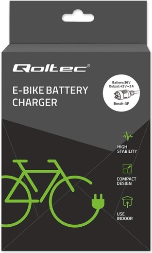 Qolteci e-ratta laadija on loodud 36 V liitiumioonakudele ning pakub stabiilset laadimispinget 42 V vooluga 2 A (võimsus 84 W). Ühendad selle tavalisse 230 V pistikupessa ja LED-indikaatori abil näed kohe, kas toimub laadimine (punane) või on aku täis laetud (roheline). Tugev konstruktsioon IP54 kaitseastmega peab vastu tolmule ja pritsmeveele, sobides garaaži, varikatuse alla ja ka maastikul kasutamiseks.