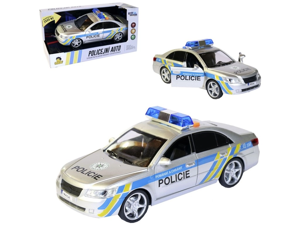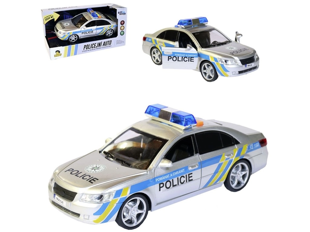 Politseiauto töötab 3 AG13 patareiga, mida on lihtne vahetada. Mänguasi tarnitakse tšehhikeelses pakendis mõõtmetega 29 × 12 × 14 cm, mis teeb sellest suurepärase kingituse.