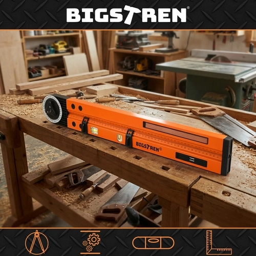 Integreeritud 500 mm joonlaud selge millimeetriskaalaga säästab aega – ei pea haarama teist mõõteriista. Nurgalukk hoiab seadistuse stabiilsena materjalile ülekandmisel ja tugev alumiiniumisulamist korpus koos ABS-elementidega peab vastu nõudlikule kasutusele. Kompaktne ehitus asendab mitu tööriista, säästes ruumi nii kohvris kui tööplatsil.