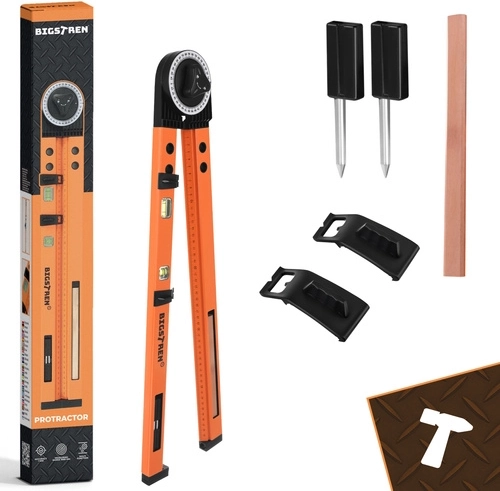 Universaalne tööriist töökotta ja ehitusele: kombineeritud nurgamõõdik, lood ja joonestuskompass ühes. Tänu vahemikule 0–270°, kahele libellile (horisontaalne + vertikaalne) ja integreeritud 500 mm joonlauale mõõdad täpselt, kannad üle nurki ja joonestad kiiresti kaari. Tugev alumiiniumisulamist konstruktsioon, nurgalukk nihkumise vastu ja kaasasolev teritatud joonestuspliiats kiirendavad iga paigaldust ja täppislõikust.