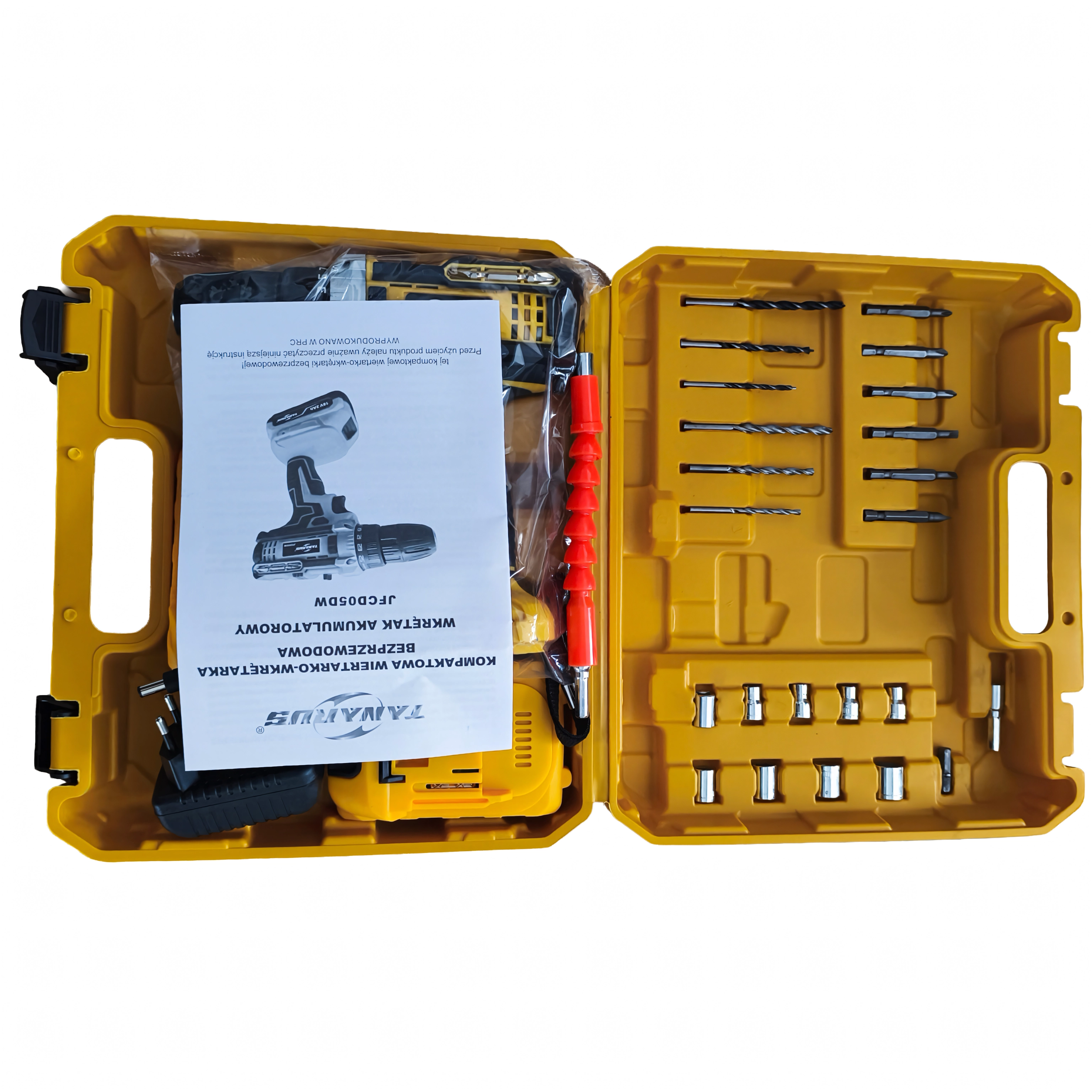 Komplekti kuuluvad vastupidav transpordikohver ja lai valik tarvikuid – puurid, otsikud, padrunvõtmepead ning painduv pikendusotsik tööks kitsastes kohtades. Kaks akut võimaldavad sujuvat vahetamist ja vähem pause. Ergonomiline libisemiskindla pinnaga käepide ja madal kaal tagavad mugavuse ka pikemal kasutamisel.