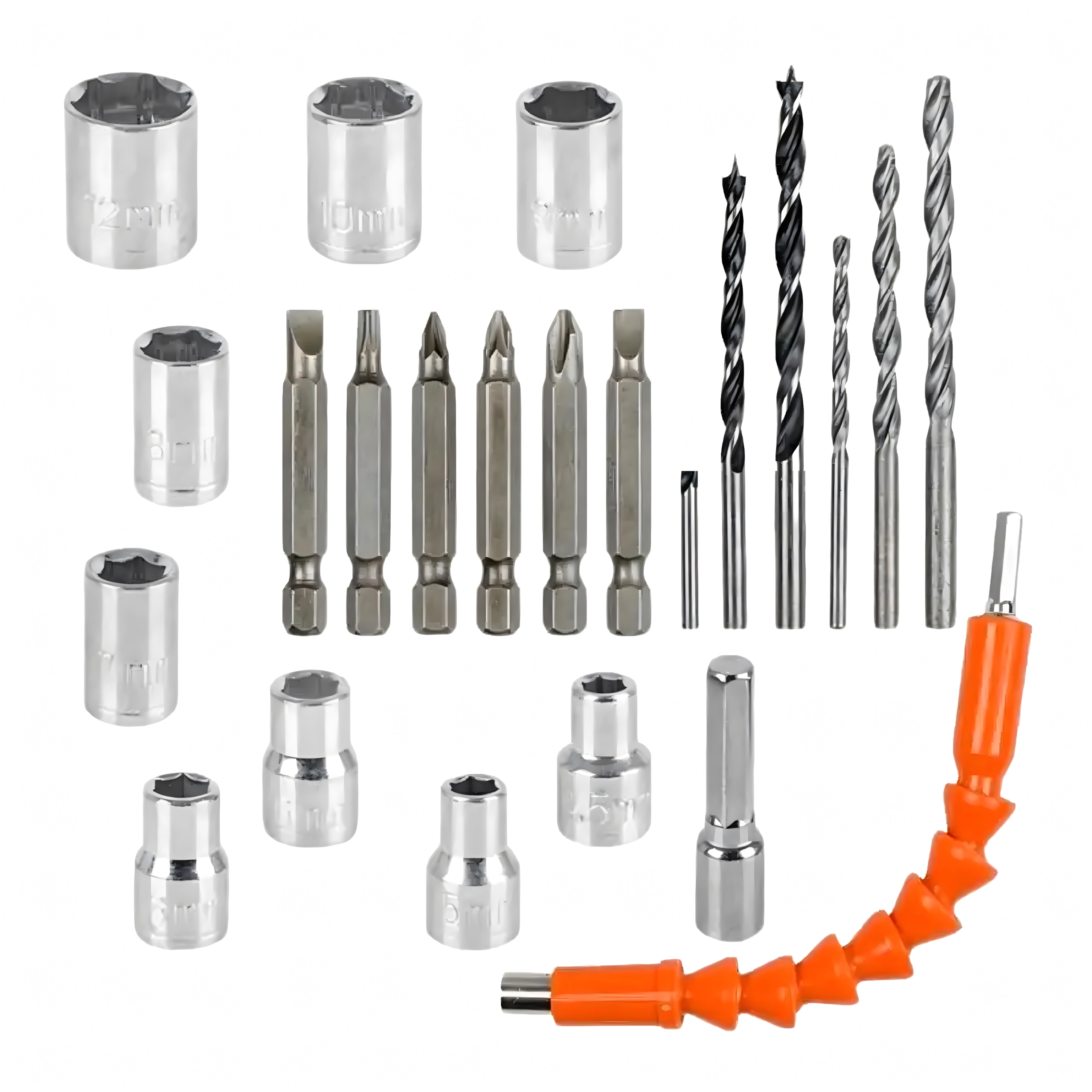Vastupidav kohver hoiab kõik selgelt omal kohal. Otsakute, puuride ja painduva pikenduse komplekt teeb töö lihtsamaks ka raskesti ligipääsetavates kohtades.