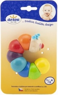 See armas DETOA röövik on valmistatud kvaliteetsest puidust ja värvilistest helmestest, mis on lükitud elastsele kummipaelale. Pigistades ja painutades röövik liigub, mis pakub lastele lõbu ja treenib loomulikul viisil nende haaret ning käe-silma koordineerimist.