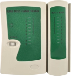 Tester kaardistab sooned ja näitab LED-idega õiget ühendust, lühiseid ning katkestusi nii võrgu- kui ka telefonikaablitel. Ideaalne UTP, FTP ja STP jaoks.