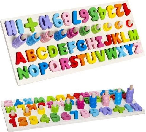See multifunktsionaalne puidust pusle ühendab lõbu ja õppimise ühes. Mängides õpivad lapsed tundma tähtede ja numbrite kujusid, harjutavad neid nimetama, moodustavad esimesi lihtsaid sõnu ning treenivad arvutamist rõngaste abil tappidel. Elav värvilahendus motiveerib avastama ja toetab loovust ning keskendumist.
