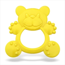 Kollane silikoonist närimislelu rõngaga on lihtne haarata ja sobib õrnaks närimiseks ning mängimiseks.