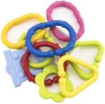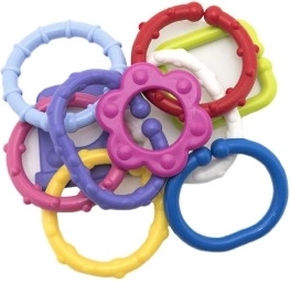 See värviliste plastkujude komplekt on ideaalne esimene mänguasi imikutele. Detailid klõpsavad hõlpsasti kokku ja püsivad kindlalt, nii et lapsed saavad korduvalt ehitada kette ja lihtsaid konstruktsioone. Erinevad tekstuurid ja värvid pakuvad rikkalikku meelelist stimulatsiooni ning kõrin-efekt köidab ja rahustab.