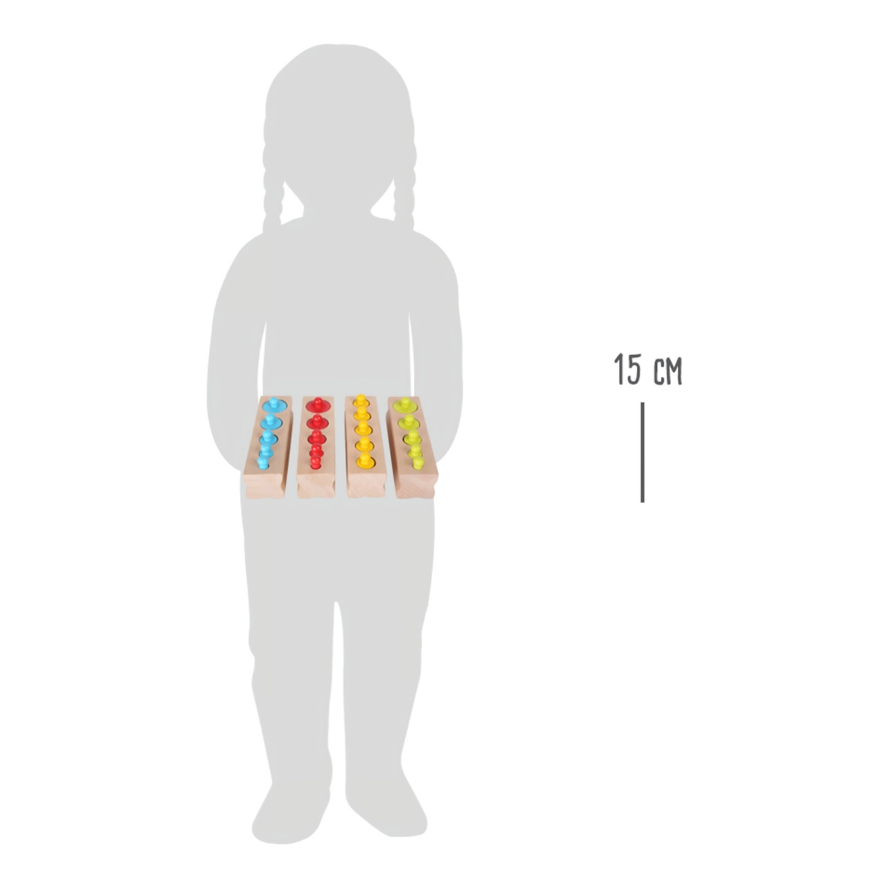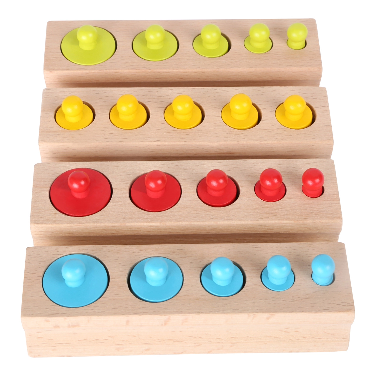 Puidust värvilised rullid aitavad lastel mõista mustreid ja teha otsuseid õige paigutuse kohta.