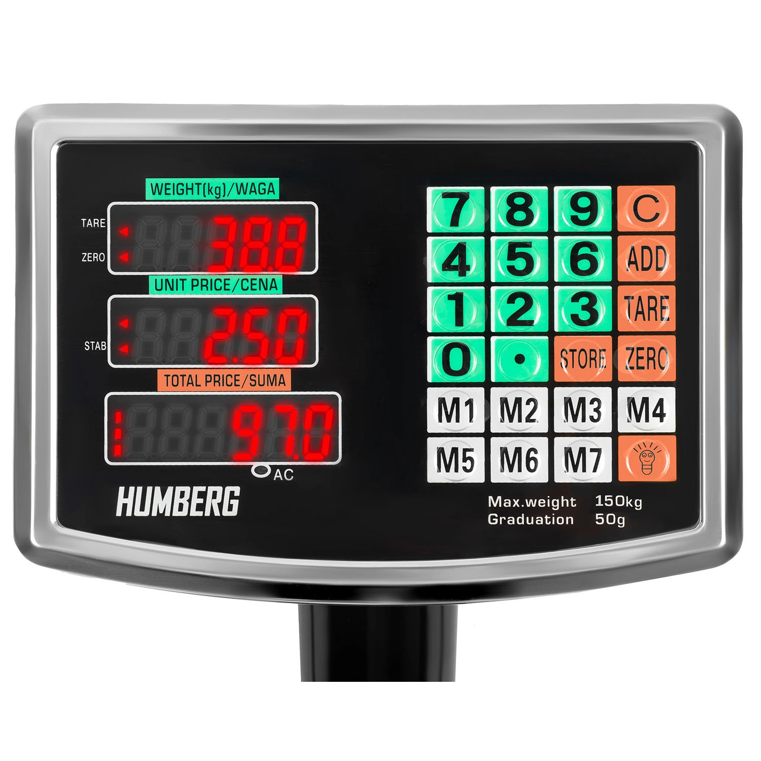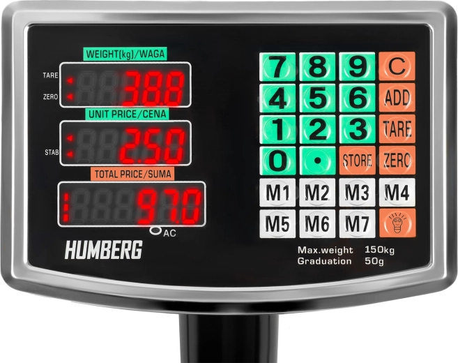 See professionaalne platvormkaal HUMBREG MH-191 on loodud täpseks ja kiireks kaalumiseks nõudlikes tingimustes. Täpsus 0,05 kg, maksimaalne koormus 150 kg ja kolmerealine taustvalgustusega LCD selgeteks näitudeks muudavad töö ladudes, töökodades ja komplekteerimisel lihtsamaks. Ülekoormuse hoiatus kaitseb seadet ja kaalutavat kaupa.