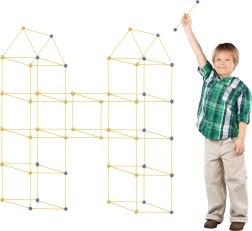 Avastage loomingulise ehitamise võlu meie suurepärase komplektiga, mis võimaldab lastel ehitada laia valikut konstruktsioone, nagu telgid, baasid või isegi koerakuudid! Komplekt sisaldab 75 osa, sealhulgas 51 kollast pulka ja 24 eri värvi ühenduskuuli, mis pakuvad lõputuid ehitusvõimalusi.