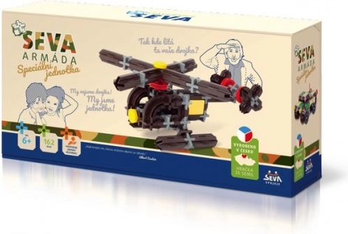 SEVA Armee ehituskomplekt pakub lastele ja vanematele nutikat meelelahutust, mis on täis võimalusi. Modulaarsus ja detailide varieeritav ühendus võimaldavad ehitada erinevaid mudeleid, sealhulgas helikopterit ja teisi sõjaväesõidukeid. Tänu läbimõeldud detailisüsteemile õpivad lapsed kannatlikkust, arendavad ruumilist kujutlusvõimet ning parandavad käe-silma koordinatsiooni.