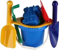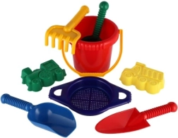 Sisaldab kõiki vajalikke vahendeid ehitamiseks ja loovaks mänguks liival – ämber, sõel, labidad, rehad ja kaks vormi.