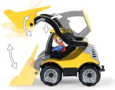 Eesmine kühvel tõuseb ja kallutab kergesti, nii et lapsed saavad liiva või klotse võtta ja ümber tõsta nagu päris laaduriga.