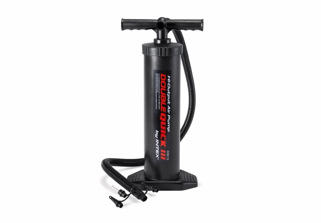 Intex Double Quick III on praktiline käsipump, mis on loodud kiireks ja mugavaks täispuhumiseks. Kahetoimeline mehhanism surub õhku nii üles- kui allaliikumisel, lühendades märgatavalt täispuhumisaega ja säästes jõudu. Tugev konstruktsioon koos stabiilse jalatoega hoiab pumba paigal ka intensiivsel kasutamisel.