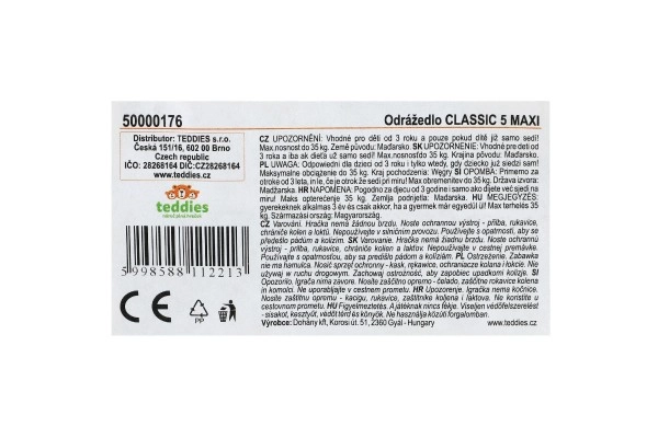 Classic 5 Maxi lükatav rattas on valmistatud vastupidavast plastist ning on ideaalne kaaslane aktiivsetele lastele. Selle istme kõrgus on 33 cm ja see kannab lapsi kuni 35 kg, muutes selle suurepäraseks valikuks eri vanuses lastele.