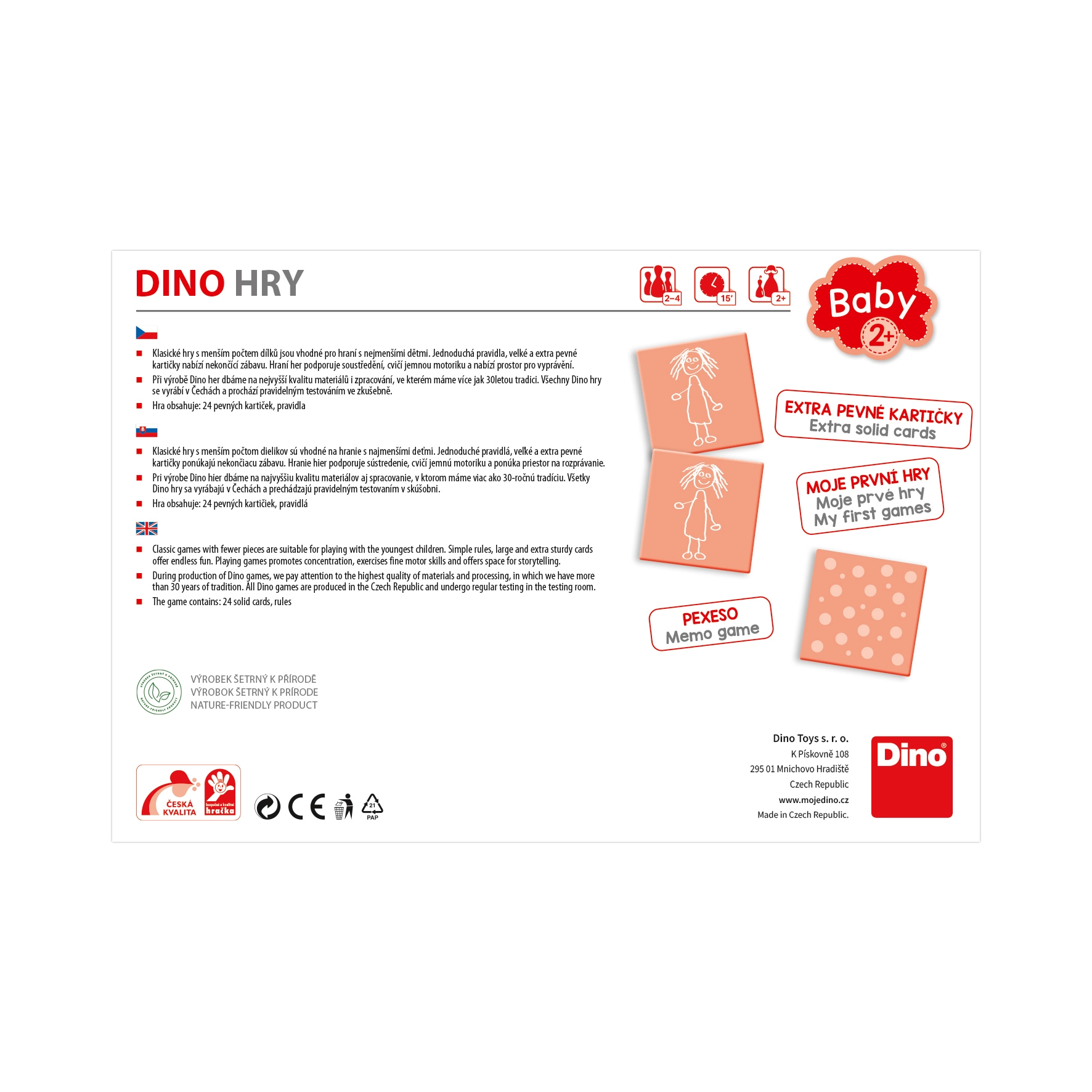 Pexeso loomisel osalevad tunnustatud Tšehhi kunstnikud ja graafilised disainerid, kes pööravad suurt tähelepanu kvaliteedile ja loomingulisusele. Dino Toys tagab Tšehhi kvaliteedi ja pika traditsiooni mängude ning mänguasjade vallas.