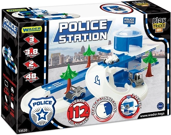 Lõbus Wader Play Tracks City politseijaoskond pakub alates 1. eluaastast lastele action’it mitmetasandilisel 3,8 m pikkusel rajal. Komplektis on kahekorruseline jaam, 3 Kid Cars politseiautot (politseiauto, kaubik, džiip) ja kaunistused koos kleepsudega. Kerge kokkupanek ja ohutu, vastupidav plast arendavad fantaasiat ja peenmotoorikat ning on suurepärane kingitus.