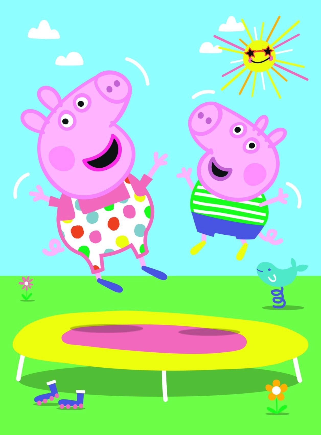 Neli rõõmsat pilti Peppa ja sõpradega innustavad lapsi mängima ning toetavad visuaalset taju.