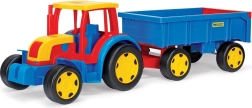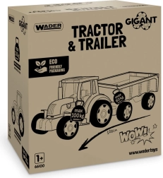 Meie suur Gigant-seeria traktor on varustatud haagisega, millel on avatav tagaluuk. Need sõidukid on laste jaoks ideaalsed mänguasjad nii ehitamiseks, laadimiseks kui ka materjalide teisaldamiseks. Traktori liikuv kopp toimib buldooseri või laadurina, mis muudab mängu veelgi lõbusamaks. Selle traktori eelisteks on kvaliteetne teostus, vastupidavus ja kandevõime – traktor kannab kuni 100 kg ja haagis kuni 60 kg.