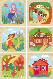 Avastage klassikaliste muinasjuttude võlu Vilac puidust klotsidega Lood. Üheksa kvaliteetset klotsi kaunite illustratsioonidega võimaldavad lastel kokku panna kuni kuus suurt pilti armastatud lugudest, nagu Väike merineitsi, Saabastega kass või Piparkoogimajake. Mänguasi arendab loogilist mõtlemist, peenmotoorikat ja visuaalset taju juba alates 2. eluaastast.
