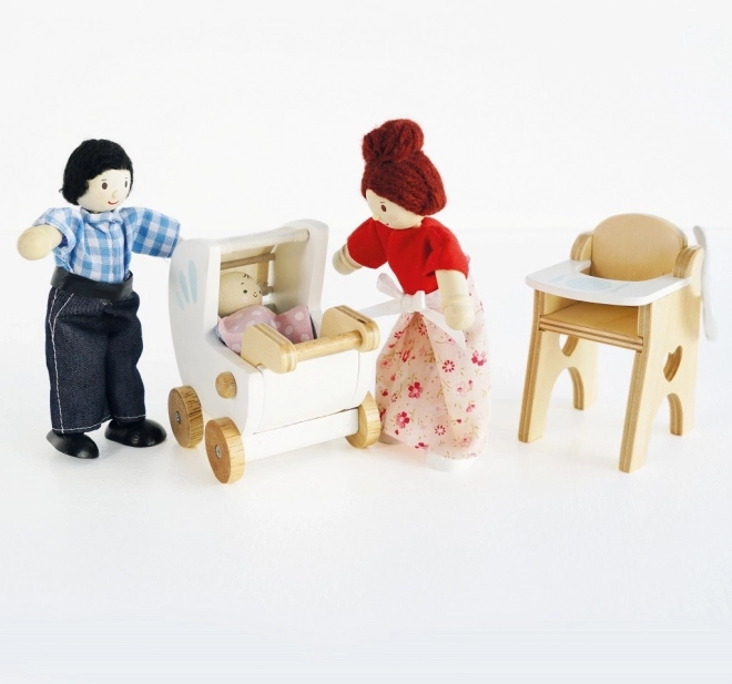 Armas puidust mängukomplekt LE TOY VANilt kujutlusvõimalusterohkeks mänguks beebiga. Sisaldab vankrit, kõrget söögitooli, söögikomplekti ja kotti. Tekstiillosad on käsitsi õmmeldud ning kõik detailid on valmistatud kvaliteetsest kautšukipuidust. Mänguasi on kaunistatud mittetoksiliste veepõhiste värvidega, on eetiliselt toodetud ja toetab loovust, peenmotoorikat ning koordinatsiooni.
