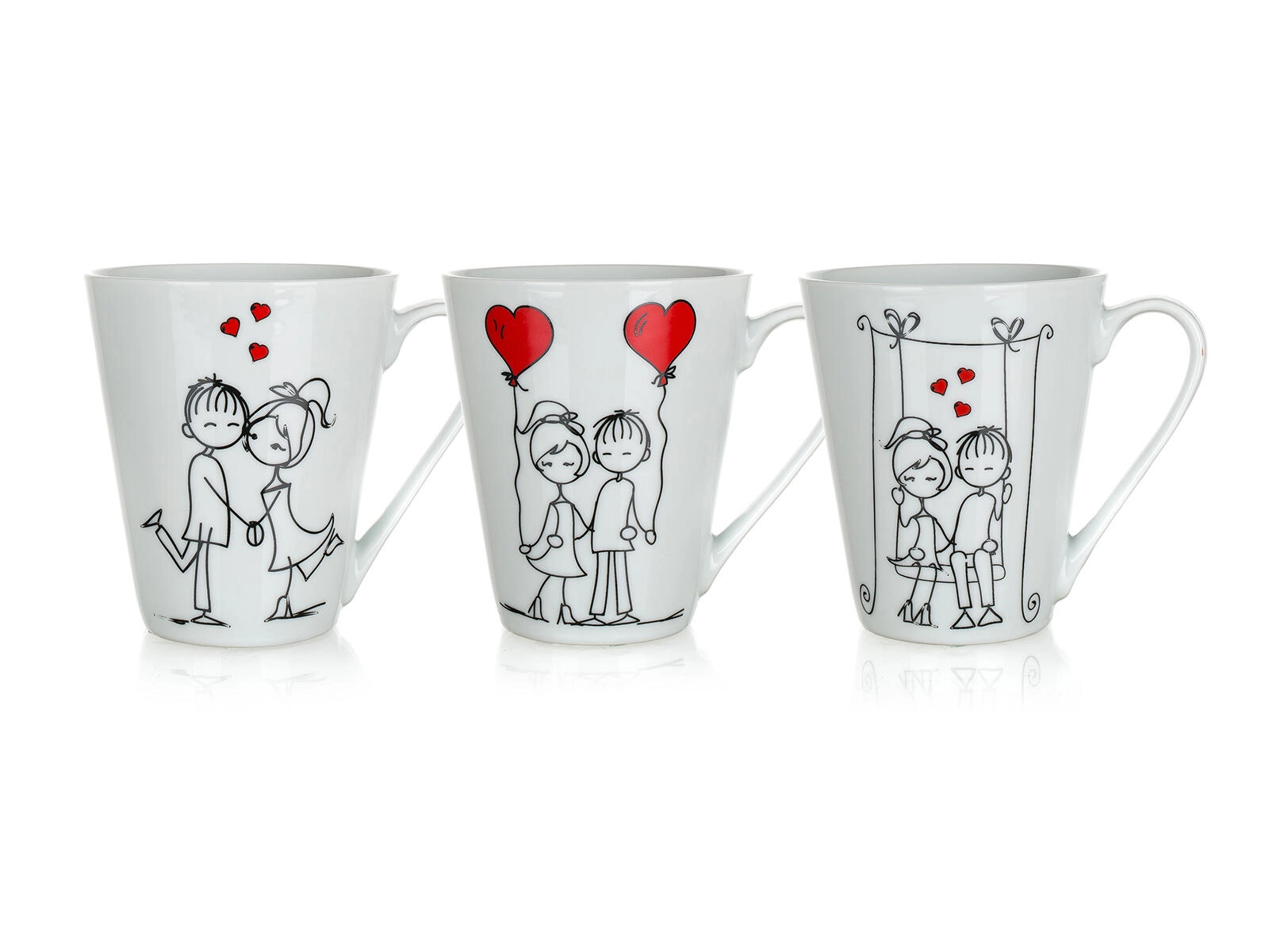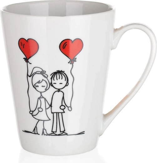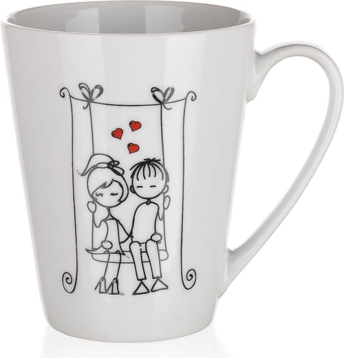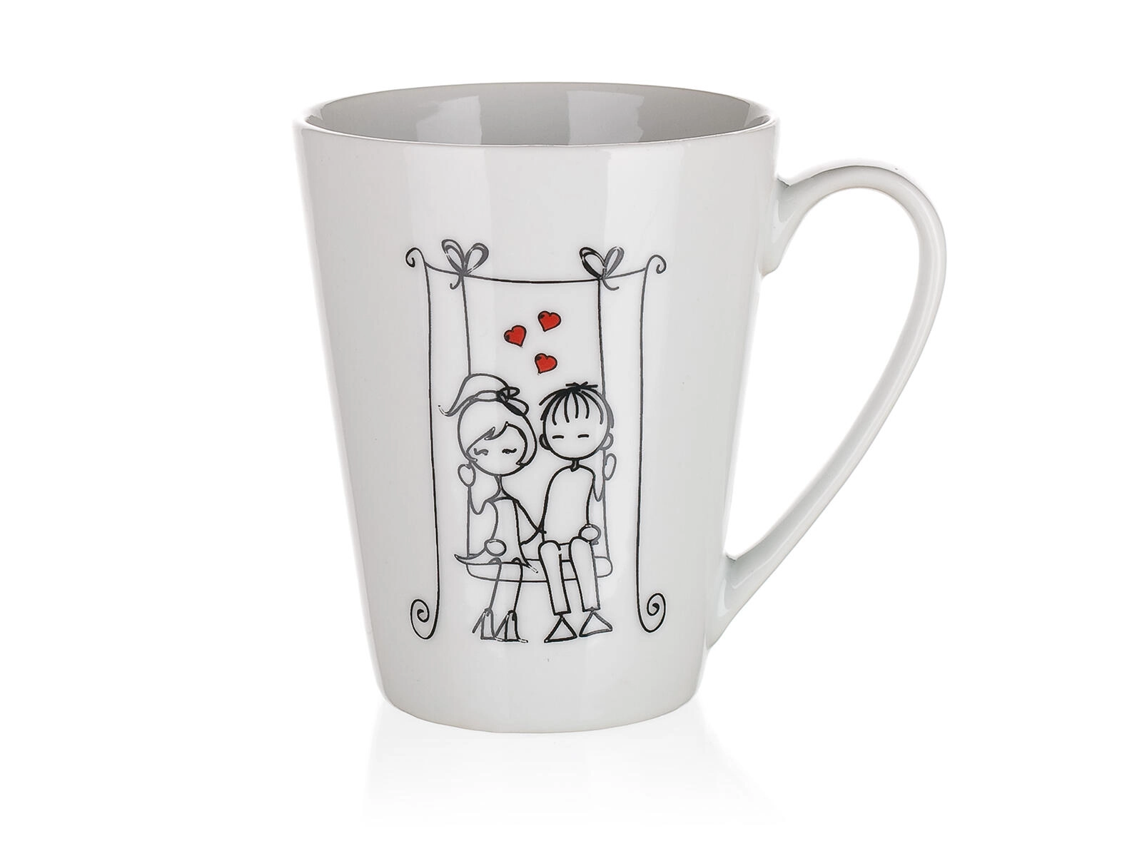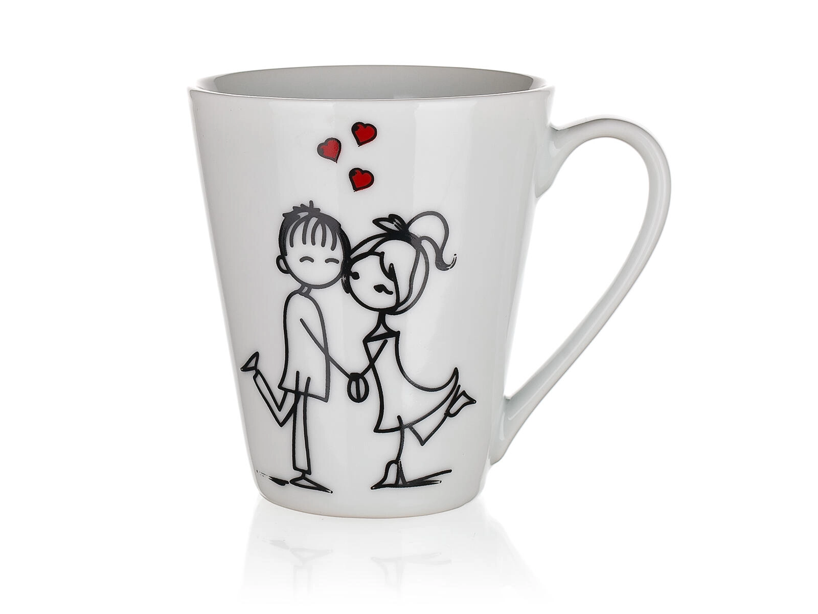 Nauti oma lemmikuid kuumi ja külmi jooke elegantses keraamilises kruusis LOVE, mahuga 330 ml. Tänu kõrgemale, kergelt koonilisele kujule on seda mugav käes hoida, sellest on mõnus juua ning romantilised kaunistused paari ja südamete motiividega rõõmustavad nii kingitusena kui ka igapäevaselt.