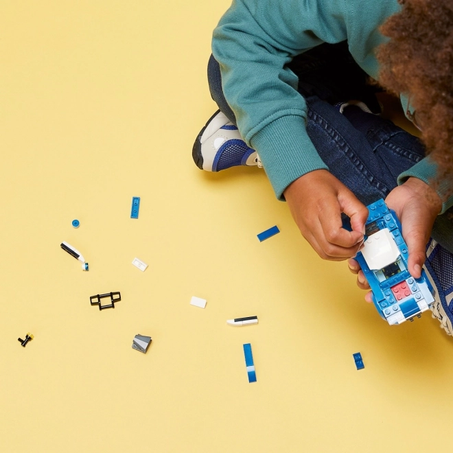 LEGO politseiauto mudelil on koht politseiminifiguurile ja realistlikud detailid dünaamiliseks mänguks.
