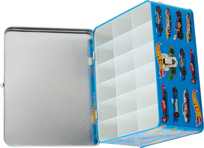 See stiilne sinine kohver võidusõidugraafika ja loosungiga „Challenge Your Limits” on suurepärane lahendus kõigile väikestele kollektsionääridele. Seest leiad eemaldatava võre 18 eraldi lahtriga, mis hoiavad mudelautod korrapäraselt eraldatuna ja kaitstuna. Robustne metallkonstruktsioon ja usaldusväärne pannal-kinnitus tagavad turvalise hoiustamise ka kandmisel.