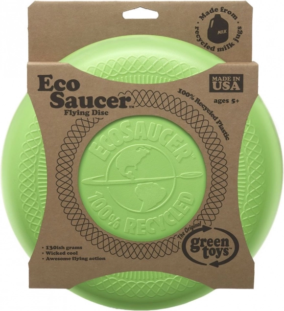 Kerge ja vastupidav GREEN TOYS EcoSaucer lendav taldrik rõõmustab nii väikseid kui suuri mängijaid. Valmistatud taaskasutatud piimapudelite plastist, on BPA-, PVC- ja ftalaadivaba, sileda ja tugeva pinnaga ning tänu madalale kaalule lendab suurepäraselt ja kiiresti. Lihtne hooldus – võib pesta nõudepesumasinas.