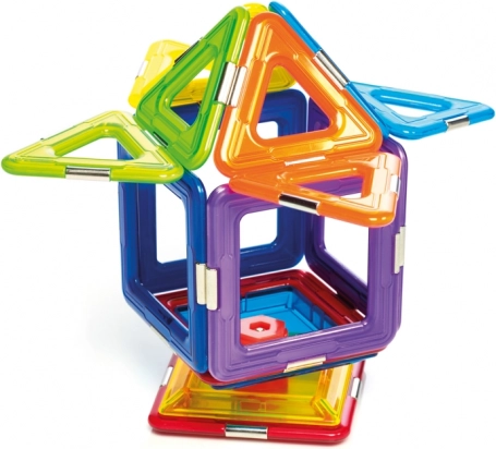 Komplektis on kokku 6 magnetilist ruutu, 8 kolmnurka ja 1 spinner, mis annab rohkelt võimalusi katsetamiseks. See komplekt on mitte ainult lõbus, vaid ka hariv ning arendab laste oskusi nagu ruumiline mõtlemine, koordinatsioon, keskendumine ja loovus.