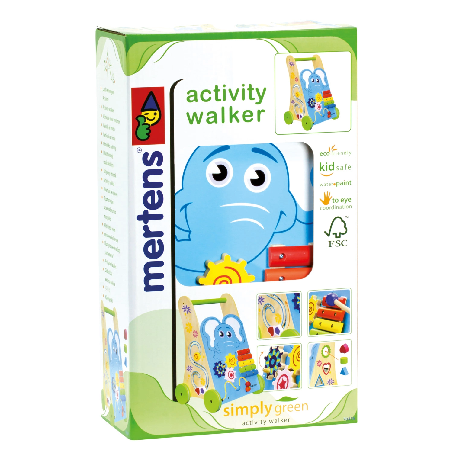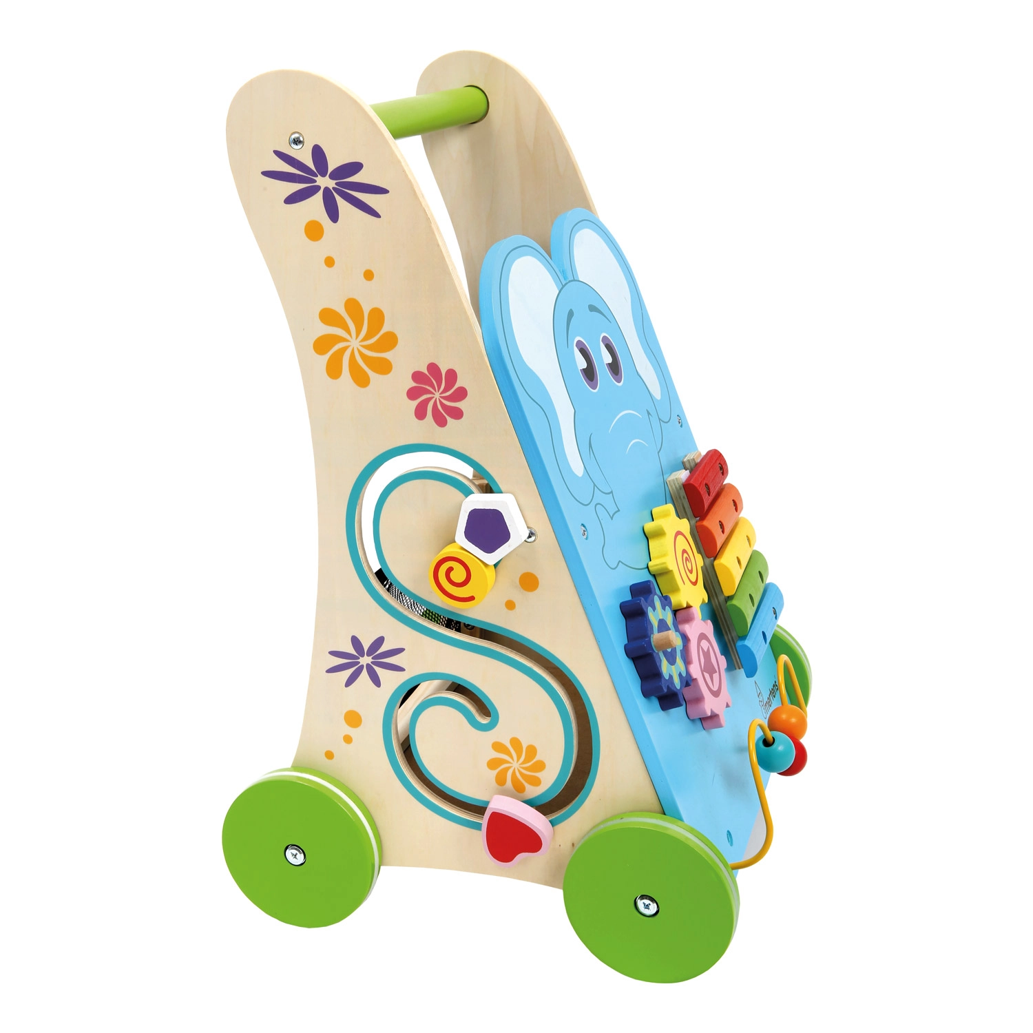 Toetage oma väikelapse esimesi samme ja igakülgset arengut selle stabiilse puidust tegevuskäimistugiga. See pakub õrna kõlaga ksülofonit, helmestelabürinti, kujude sorteerijat ja hammasrattaid, et avastada põhjus-tagajärg seoseid. Kummirattad tagavad vaikse liikumise ja kaitsevad põrandat, tugev 100% FSC-puidust konstruktsioon on turvaline ja vastupidav.
