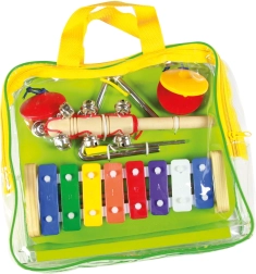 Avasta muusikamaailm Bino muusikakomplektiga! See nelja instrumendiga komplekt on ideaalne väikestele muusikutele nende muusikalise ande, kuulmise ja rütmitunde arendamiseks. Komplektis on ksülofon, kastenjetid, kolmnurk ja kellukesed, kõik mugavas kandekotis lihtsaks kaasaskandmiseks.