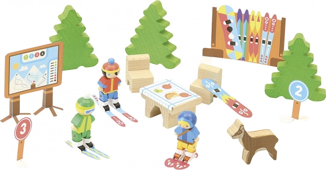 See Jeujura puidust ehituskomplekt on ideaalne lastele, kes armastavad ehitada ja oma loovust avastada. Lapsed saavad luua erinevaid hooneid tänu 120 täpselt valmistatud detailile. Komplekt sisaldab lisaks suusakeskuse elementidele ka alusmatti keskkonna imiteerimiseks.